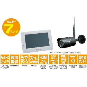 【ふるさと納税】防犯カメラ モニター&ワイヤレスHDカメラセット(モニター7インチ) 【電化製品・雑貨・日用品・防犯カメラ・カメラセット】