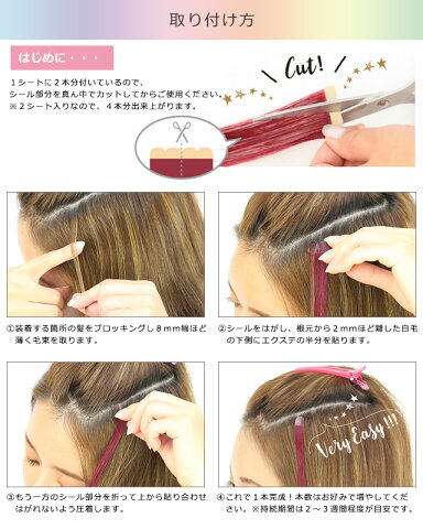 プリシラ めちゃ楽シールエクステ(シールエクステンション) 自宅で簡単にできるシールタイプのエクステ 自分で簡単に外国人風カラーのメッシュアレンジができる! 自毛にシールで貼り付けるタイプの簡単仕様です♪