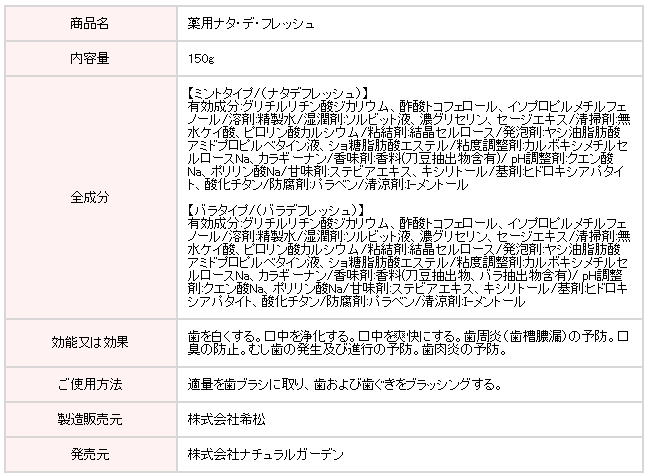 【ポイント10倍 7/26 9:59まで】お得な6本まとめ買いで4620円お得! 【薬用】ナタデフレッシュ(バラデフレッシュ)150g6本 歯磨き なたまめ歯磨き ナタマメ歯磨き 刀豆 ハミガキ 歯みがき