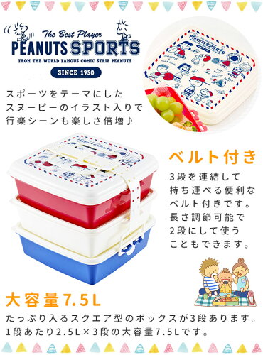 運動会 お弁当箱 ランチボックス 3段 日本製 ピクニック ランチボックス 大容量 スヌーピー スタック式 ピクニックケース 角型 仕切り付き 重箱 ファミリーランチボックス 送料無料